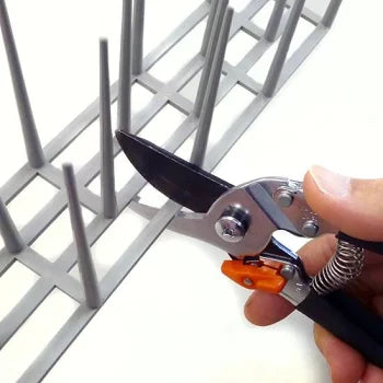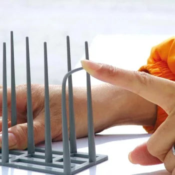鳥のタイプや状況に応じて、3タイプの剣山を取り揃えています。ハト・ムクドリ・カラス・ヒヨドリ・シラサギ・ウミネコ・カモメ対策として、それぞれに合ったタイプが選べます。いずれも屋外耐候試験10年クリアの耐候性プラスチック製。なお、パイプ状の場所には特殊構造のカバータイプが便利です。