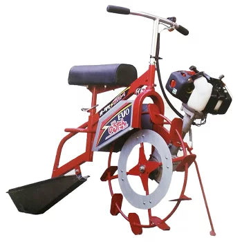 重心(エンジン)が前にあるため、車輪を軸に溝切板が軽く持ち上がり