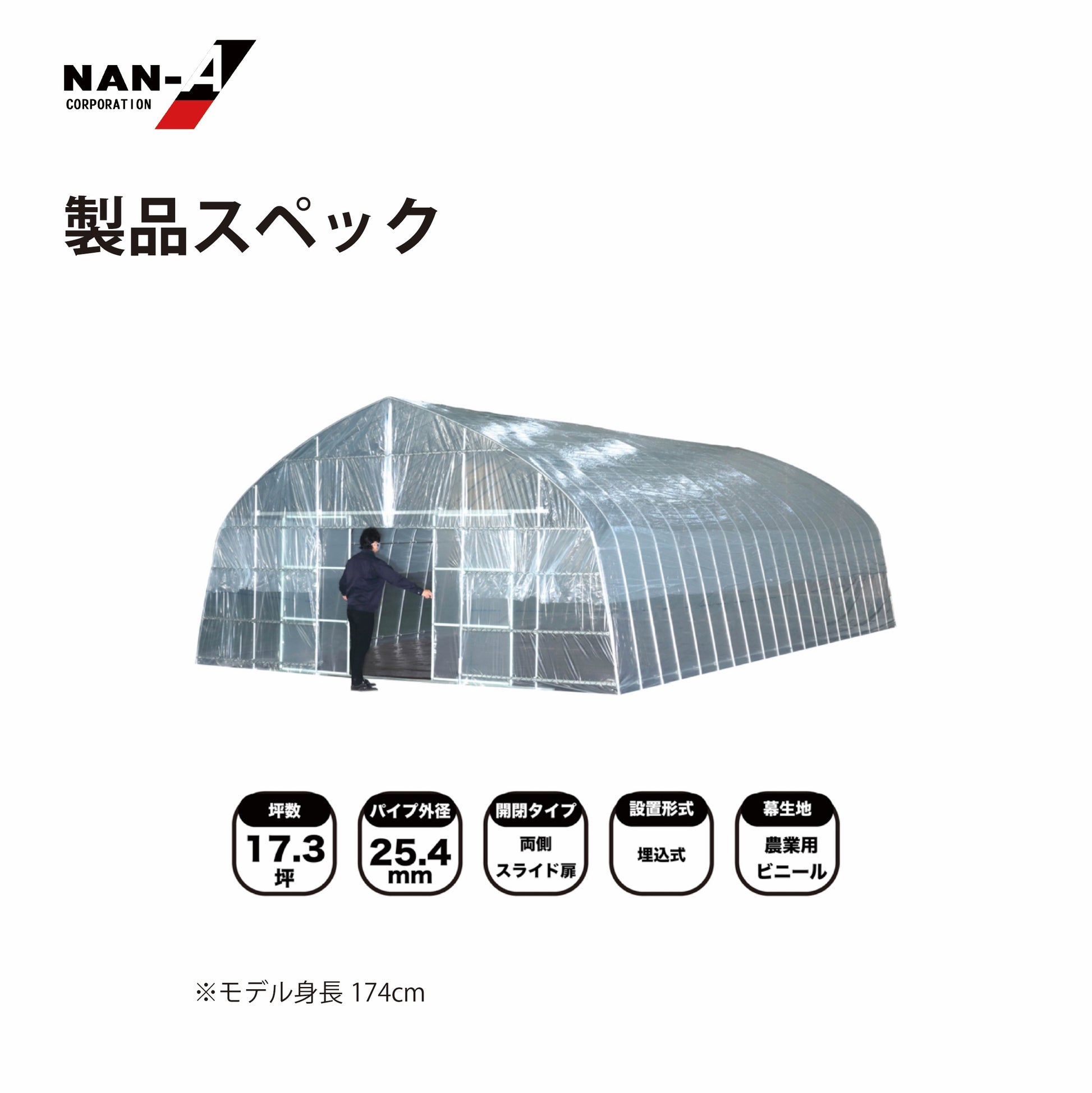 - 強固なスペック(25.4Φアーチ+50cm間隔)に両褄面、両開き扉仕様が登場