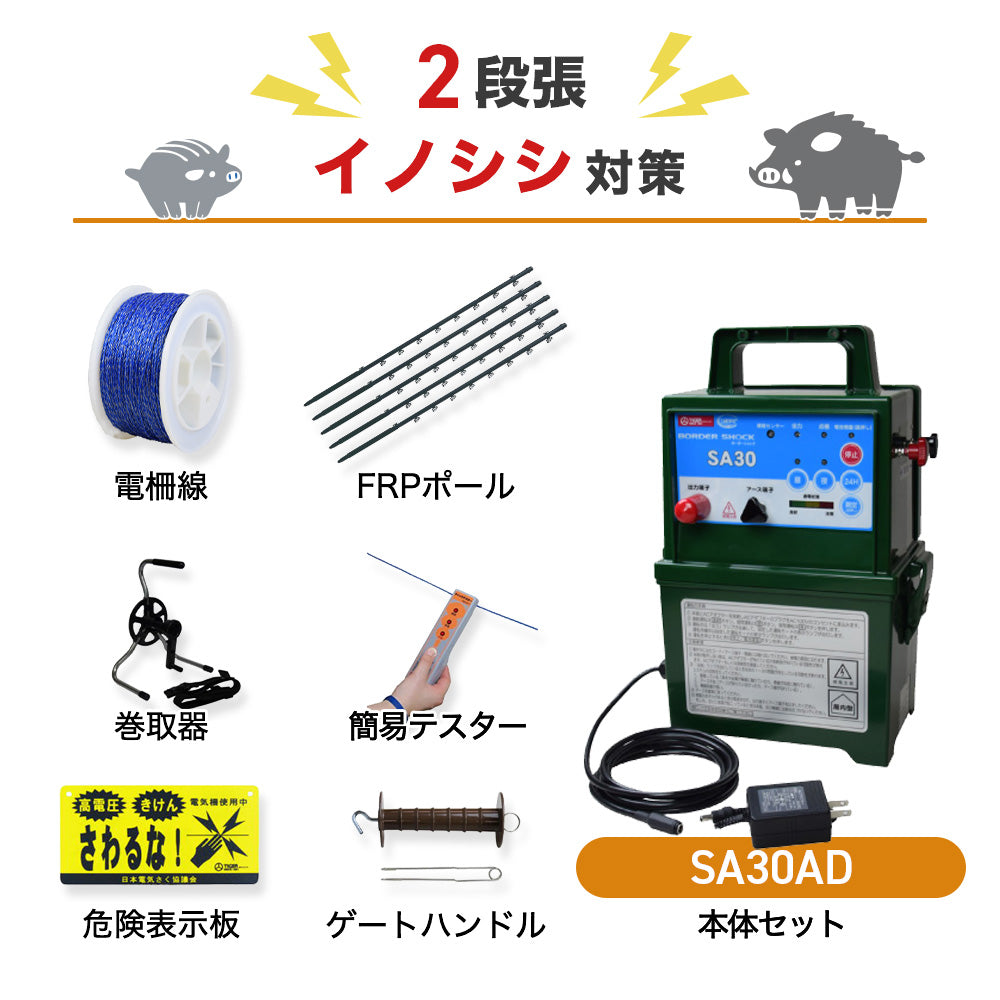 【750m×2段張り】 タイガー 電気柵 SA30ADセット イノシシ対策