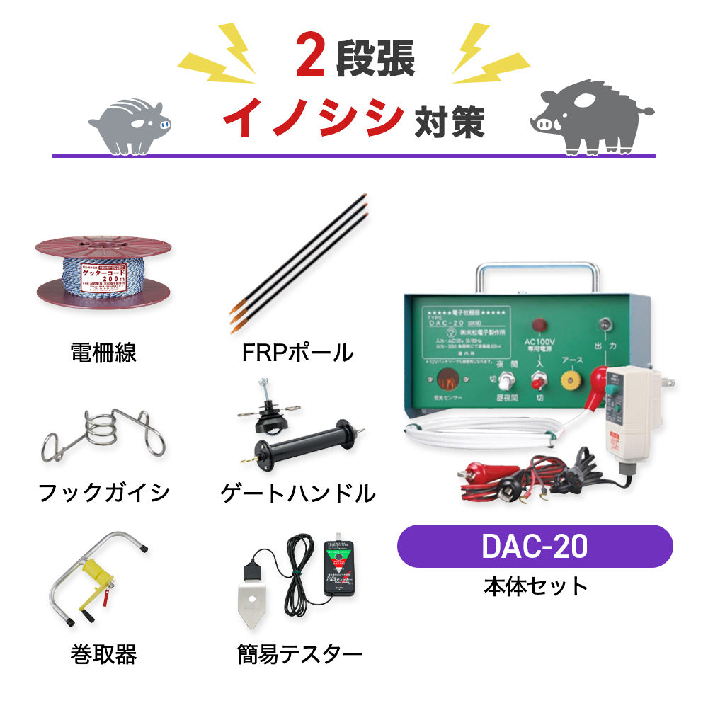 【100m×2段張り】末松電子製作所 電気柵 DAC-20 イノシシ対策