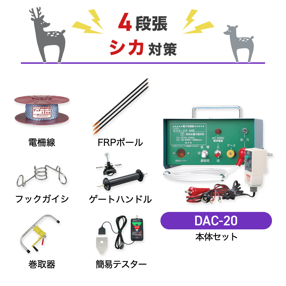 【100m×4段張り】末松電子製作所 電気柵 DAC-20 シカ対策