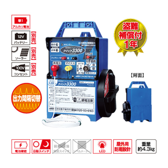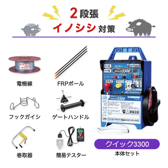 【50m×2段張り】末松電子製作所 電気柵 クイック3300 イノシシ対策