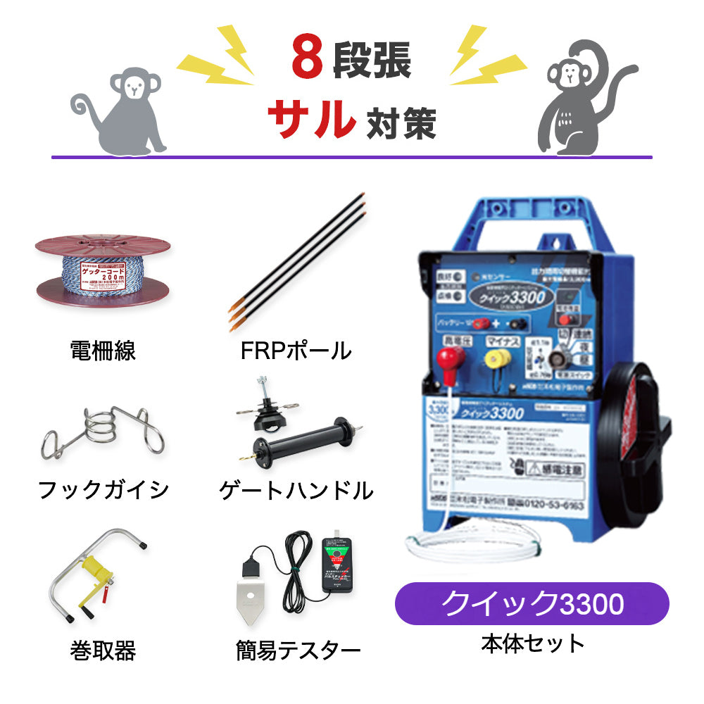 【200m×8段張り】末松電子製作所 電気柵 クイック3300 サル対策
