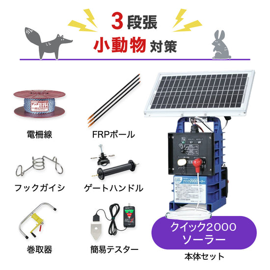 【250m×3段張り】末松電子製作所 電気柵 クイック2000ソーラー 小動物対策