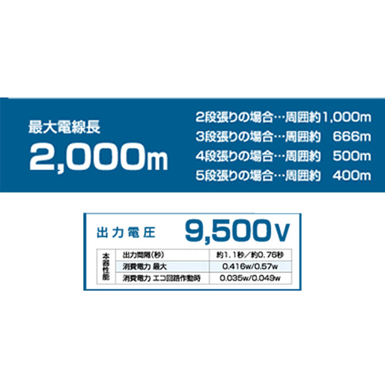 | 最大電線長 | 2,000m(2段張りの場合周囲約1,000m、3段張りの場合周囲約666m、4段張りの場合周囲約500m、5段張りの場合周囲約400mとなります。) |