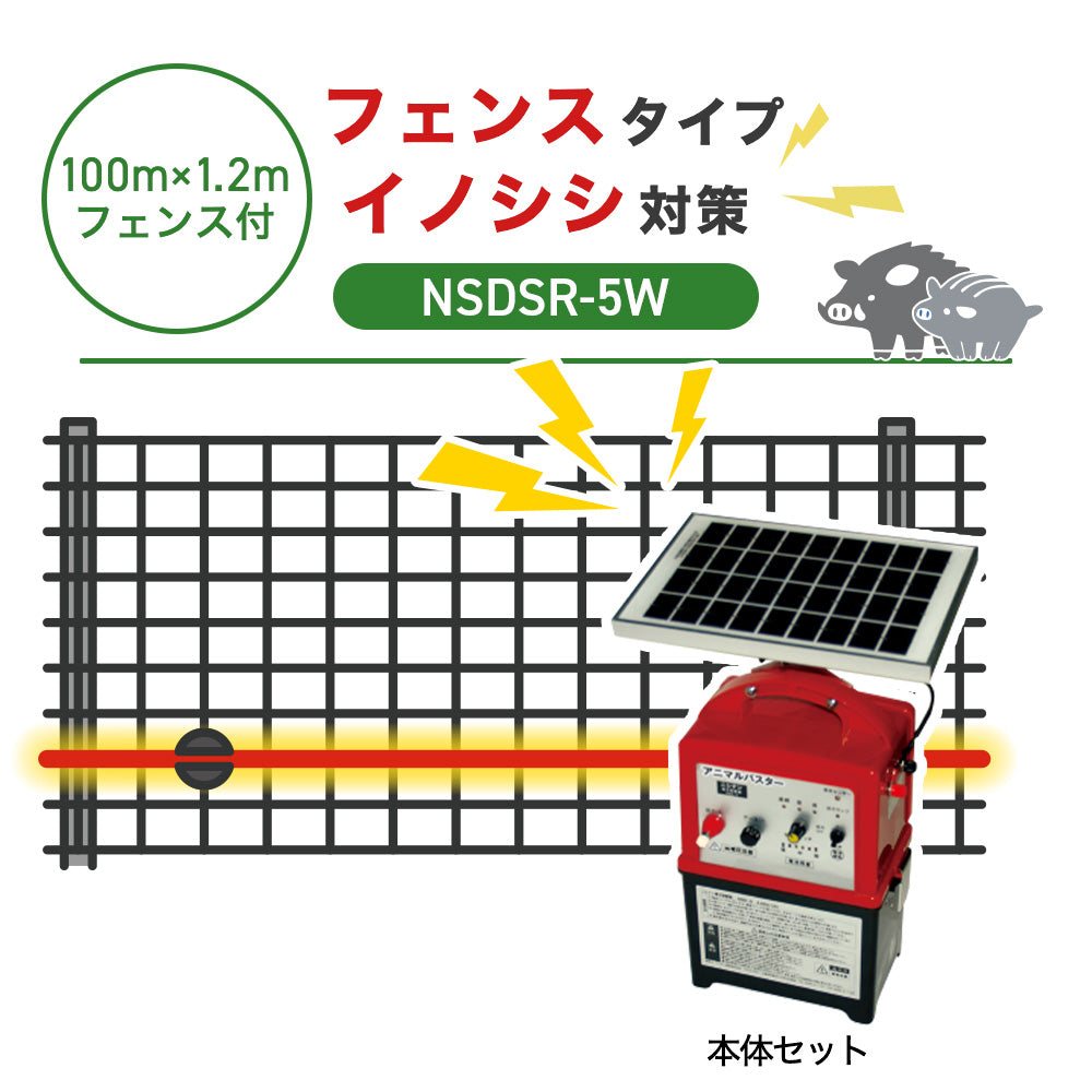 【100m・フェンス付】ニシデン 電気柵 NSDSR-5W イノシシ対策