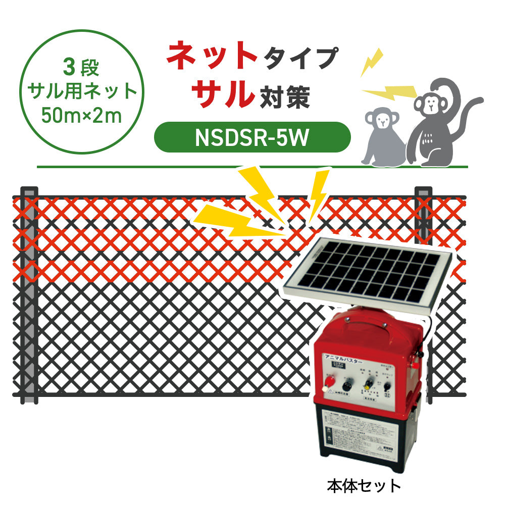 【50m・3段ネット】ニシデン 電気柵 NSDSR-5W サル対策