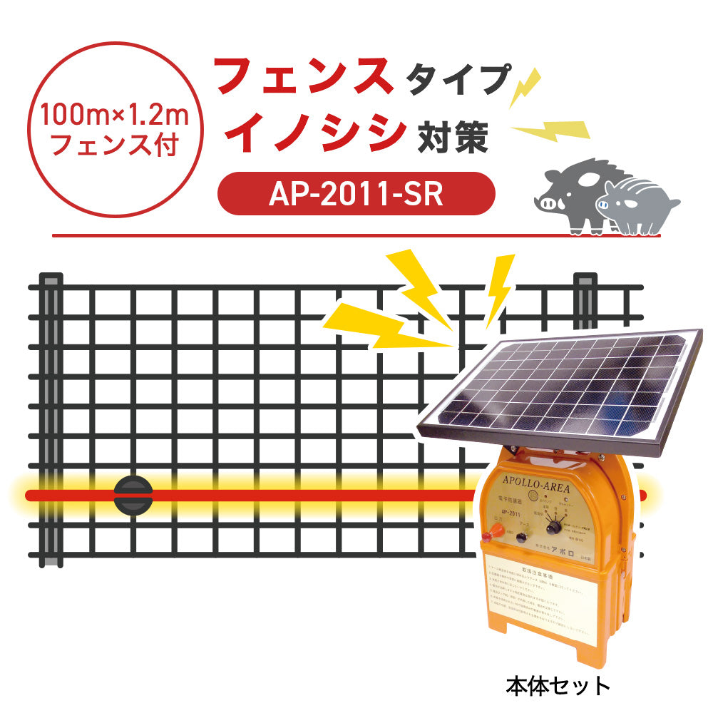【100m・フェンス付】アポロ 電気柵 AP-2011-SR イノシシ対策