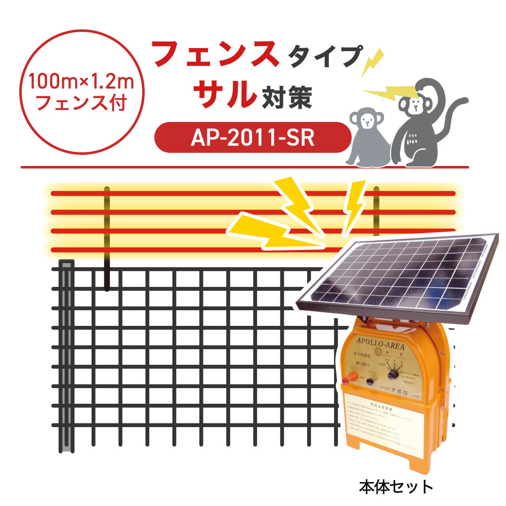 【100m・フェンス付】アポロ 電気柵 AP-2011-SR サル対策