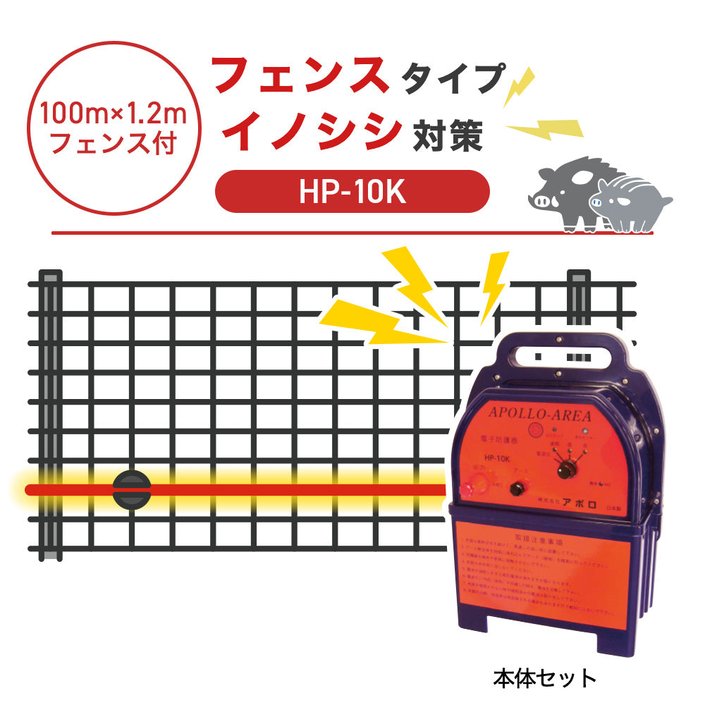 【100m・フェンス付】アポロ 電気柵 HP-10K イノシシ対策