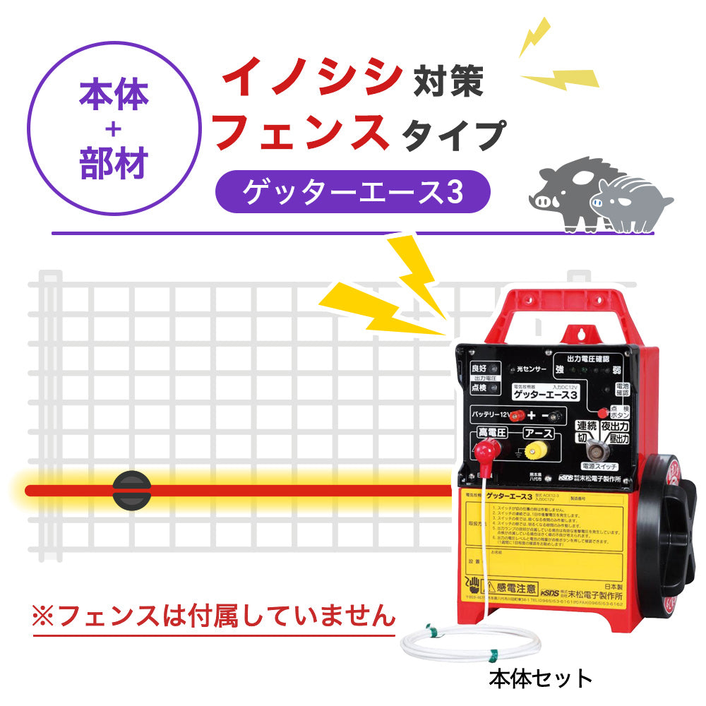 【100m・フェンス取付用セット】末松電子製作所 電気柵 ゲッターエース3 イノシシ対策 ※フェンス別売