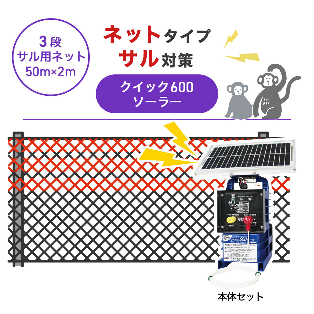 【50m・3段ネット】末松電子製作所 電気柵 クイック600ソーラー サル対策