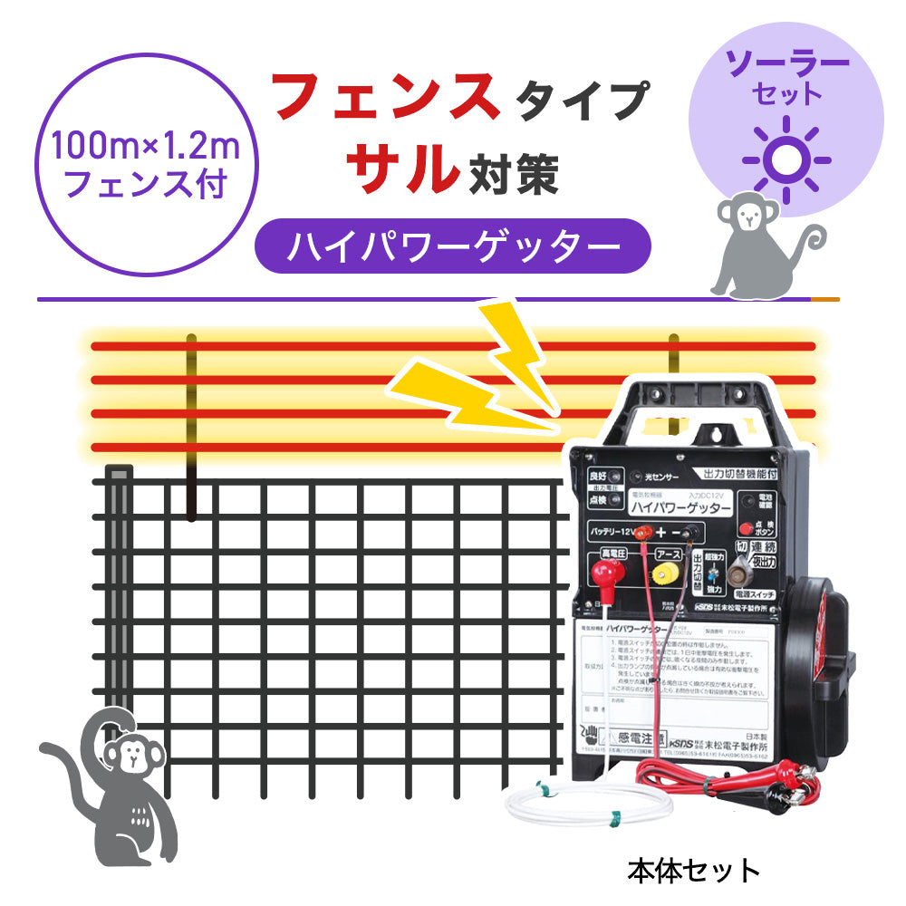【100m・フェンス付】末松電子製作所 電気柵 ハイパワーゲッター ソーラーセット サル対策