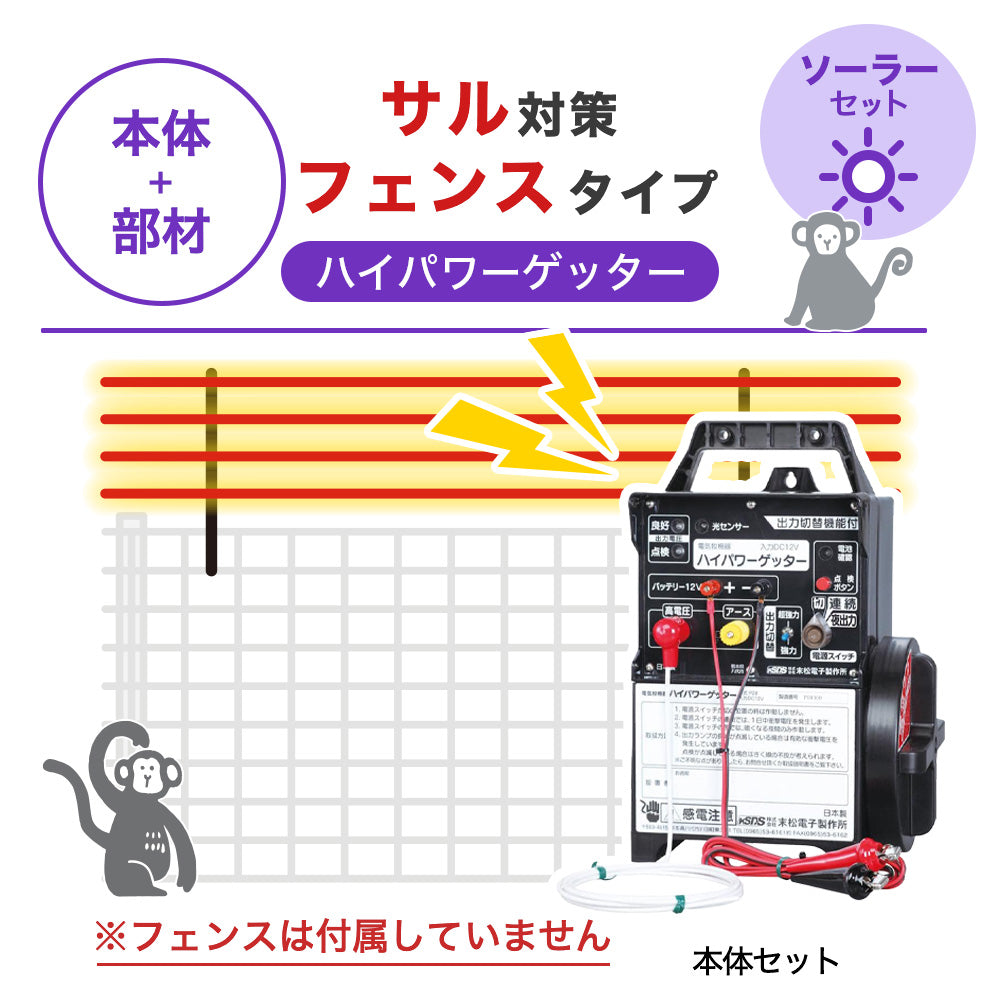 【100m・フェンス取付用セット】末松電子製作所 電気柵 ハイパワーゲッター ソーラーセット サル対策 ※フェンス別売