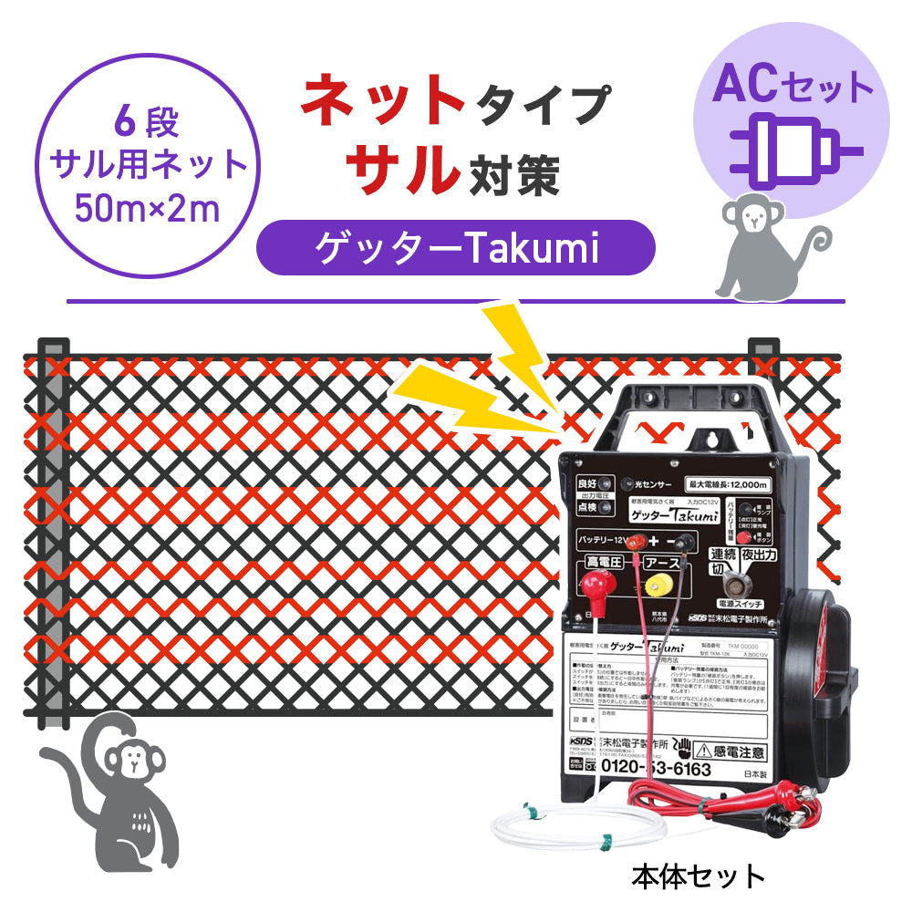 【50m・6段ネット】末松電子製作所 電気柵 ゲッターTakumi ACセット サル対策