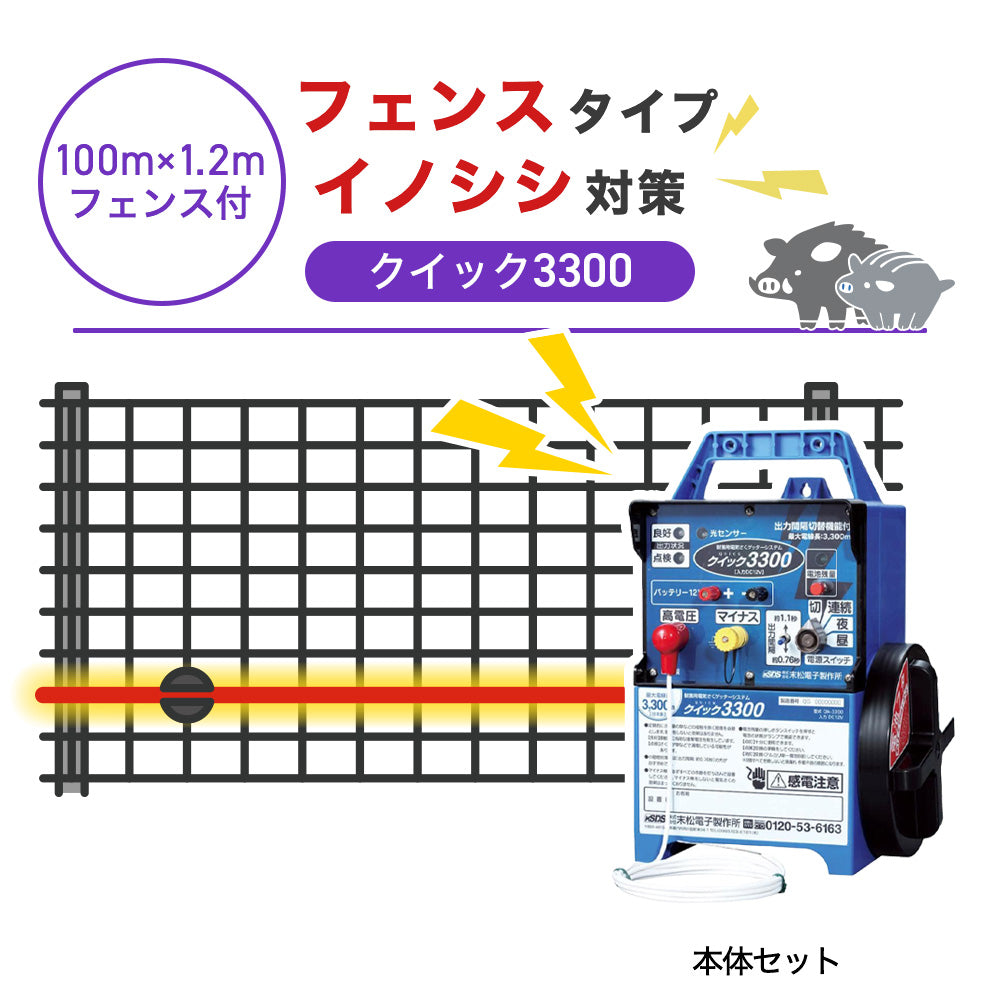 【100m・フェンス付】末松電子製作所 電気柵 クイック3300 イノシシ対策