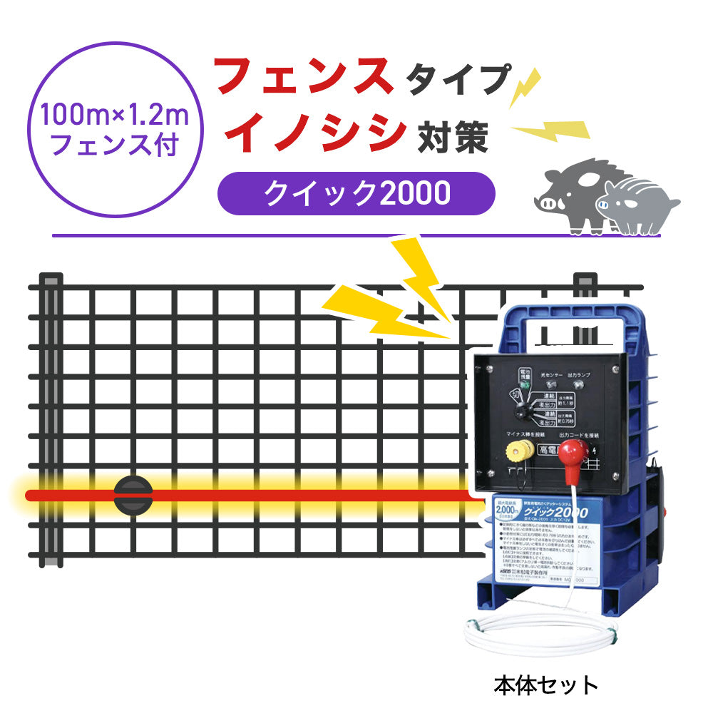 【100m・フェンス付】末松電子製作所 電気柵 クイック2000 イノシシ対策