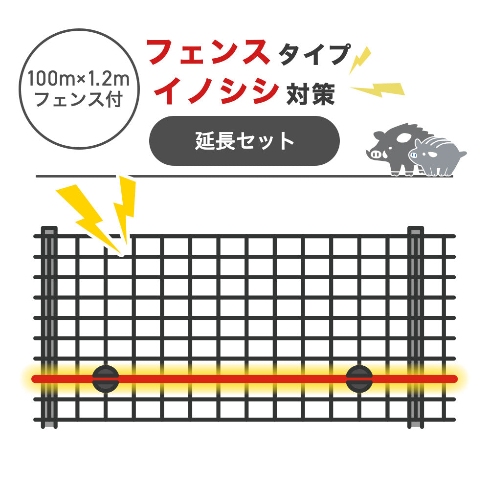 【100m延長セット・フェンス付き】電気柵 イノシシ対策