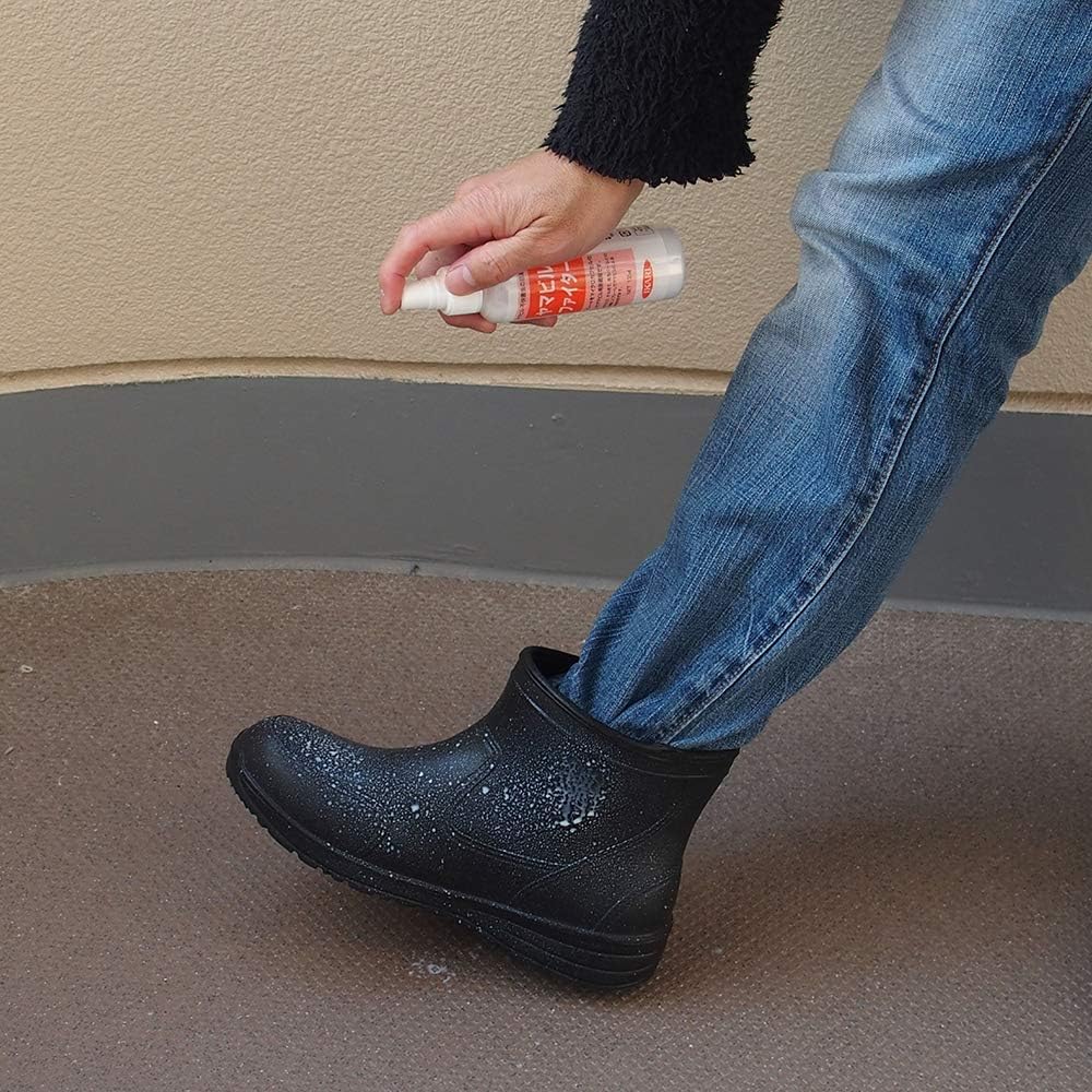 - 布製品でない靴(塩化ビニル製など)には薬液が染み込みにくいため、その都度現場で噴霧してください。